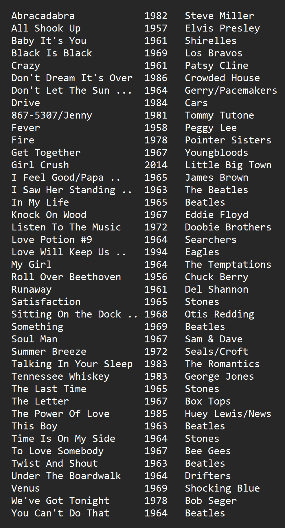 Song List