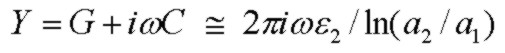with the approximate value for Y being highly accurate for all cases of interest. As is usually the case, the dielectric loss is extremely low and G << i*ωC. Since C is to a very good approximation independent of frequency and