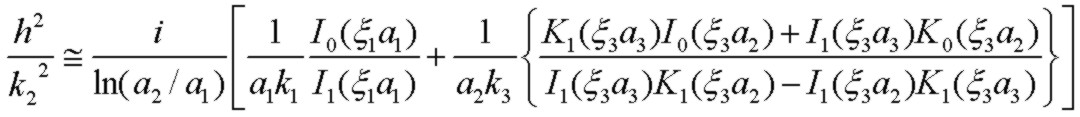 which for high frequency or very thick outer conductor a3>>a2 reduces to the case with infinite outer conductor thickness:
