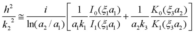 The full frequency range approximate expressions above for the transverse propagation constant h2 in the dielectric between the inner and outer conductors