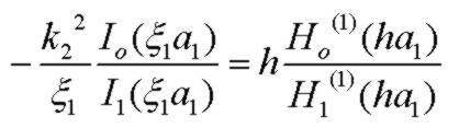 The wire-wave determinantal equation above is derived as usual by field-matching of Ez and Hφ at the single interface at a1. It can also be derived