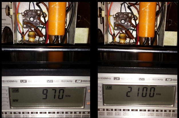 The IF transformer capacitors and the ganged tuning capacitor antenna and oscillator trimmers were adjusted for maximum signal.