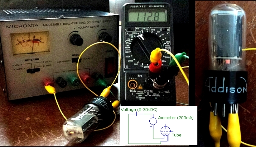 was tested at 30VDC which is sufficient for this test, as shown below for the 50L6GT: