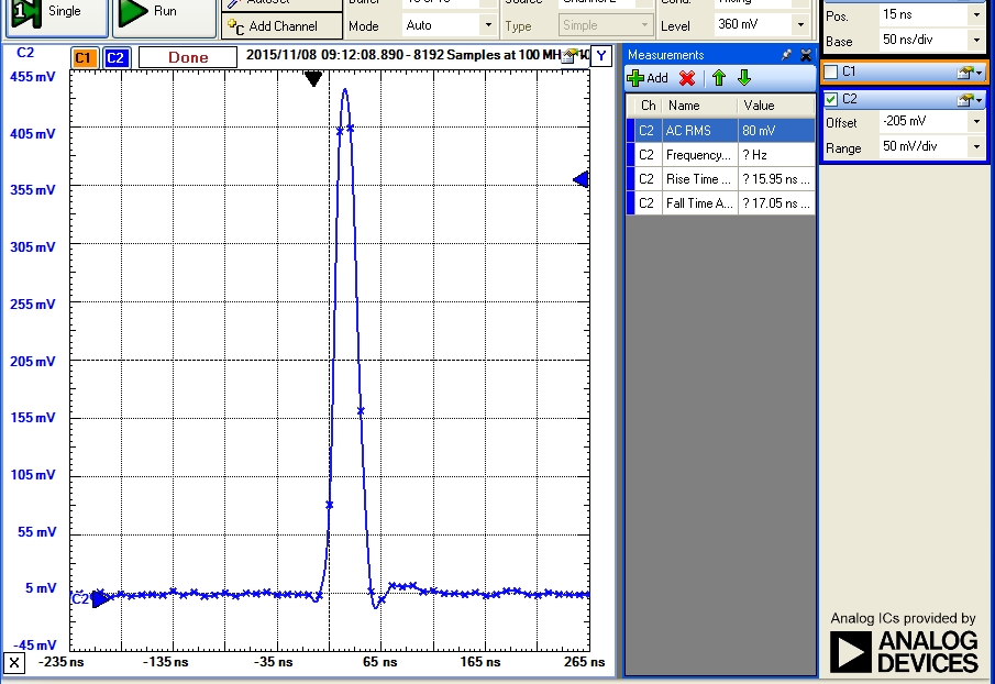 ~ 20MHz was used, demonstrating minimal pulse overshoot: