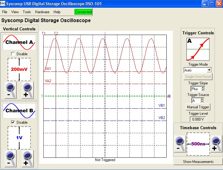 The transimpedance circuit output was measured using a 2 MHz Syscomp Electronic Design Ltd. DSO-101 Digital Storage Oscilloscope.