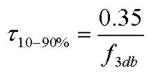 It can be shown that even for a 2nd order low-pass transfer function such as the transimpedance circuit, the f3db bandwidth and 10-90% risetime are closely approximated by: