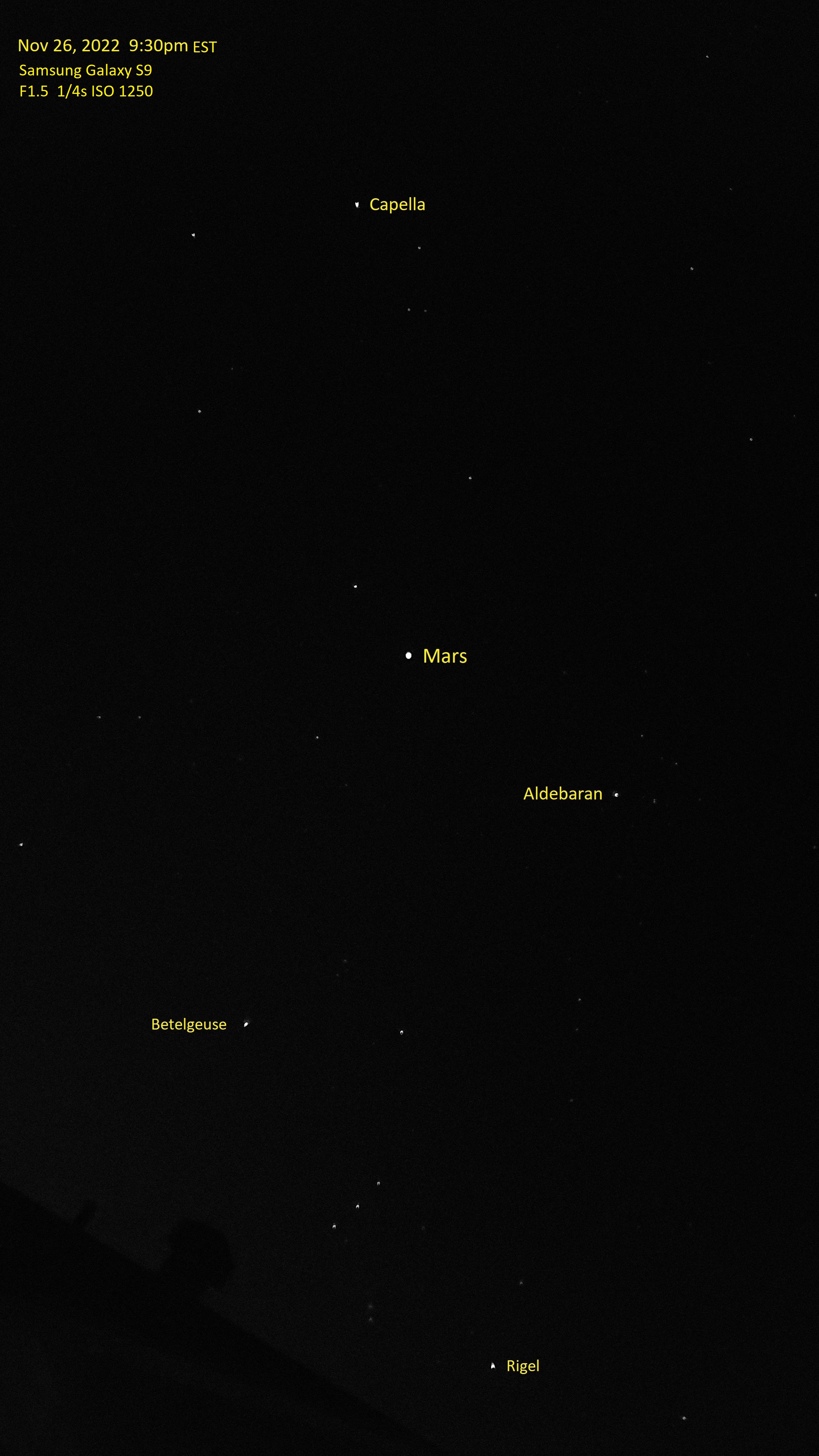 Reference Visual Magnitudes from brightest to dimmest (Nov 26, 2022) :