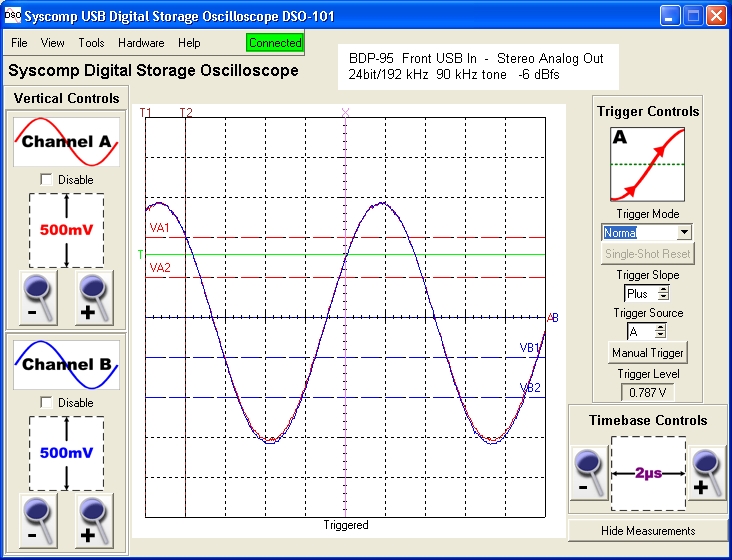 3 MHz BW scope traces showing sine-wave response of OPPO BDP-95 at stereo line-out