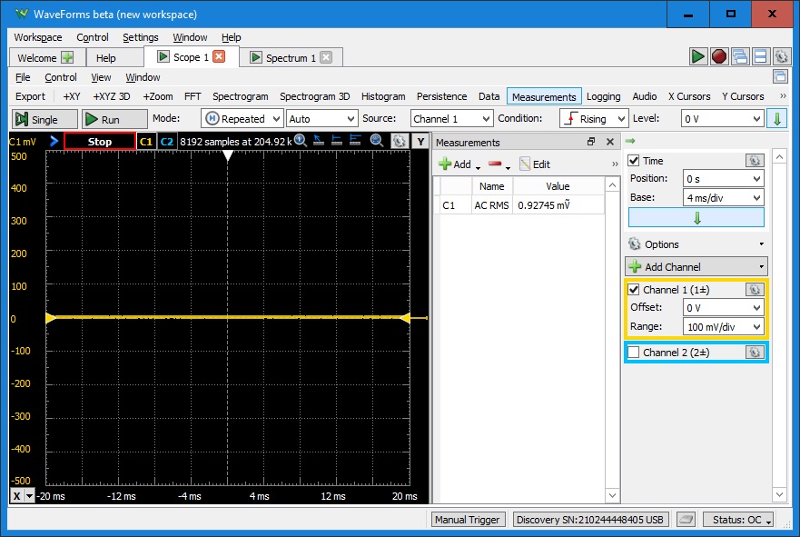 Discovery Noise Floor: Scope Default AVERAGE Mode