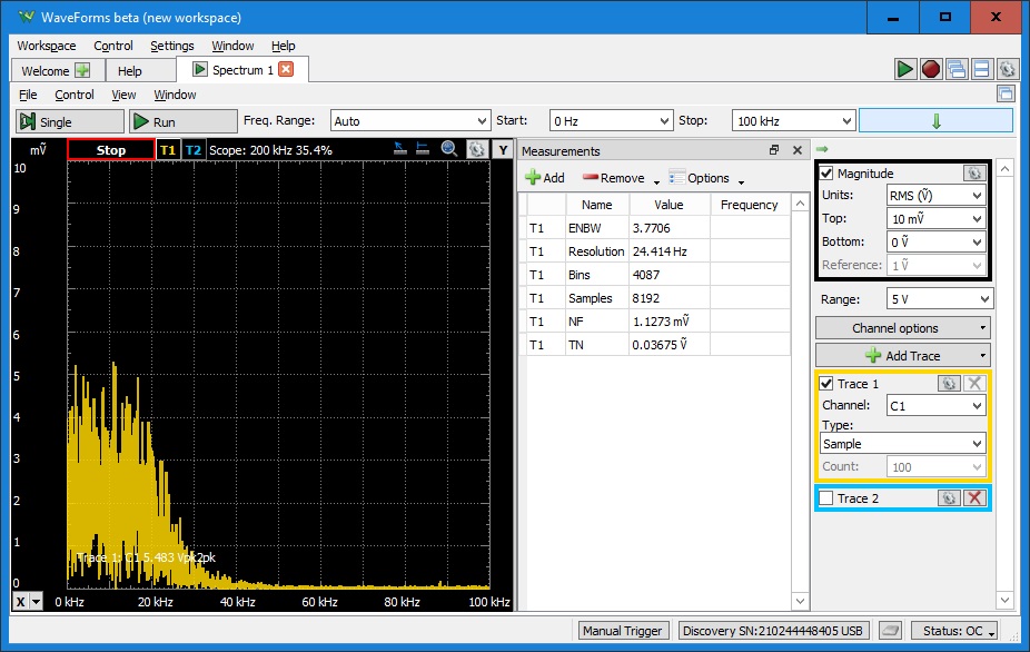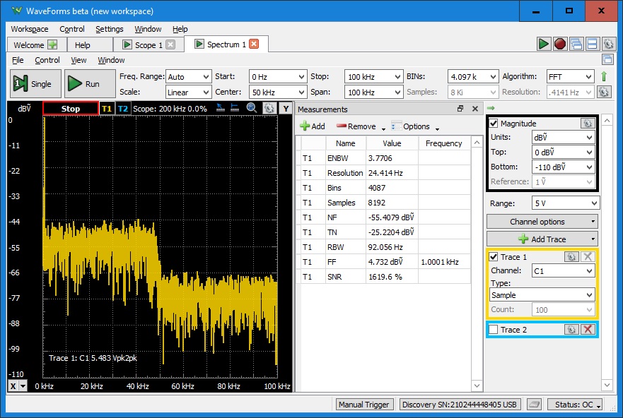 measurement bandwidth. The analog bandwidth of the Analog Discovery scope is about 30 MHz (with the AD