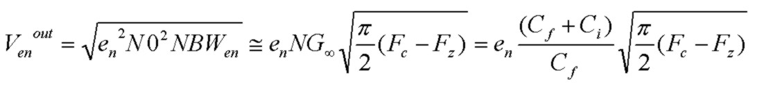the determining frequency. For the en voltage noise, the effect of the increasing noise-gain profile between Fz and Fp translates into an increased effective noise-bandwidth frequency of π/2*(Cf+Ci)/Cf*GBW.