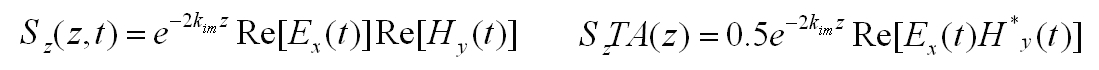 The numerical values of Sz(t) and SzTA are computed from these Ex and scaled Hy values.