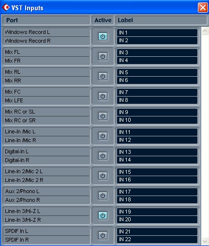 directed to VST output Bus 1 (Front L/R speakers) and a suitable mix level was determined.