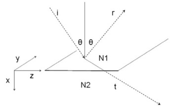 The plane of incidence is the XZ plane in the orientation shown below. The media interface is the plane X=0: