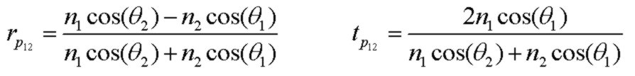and for P polarization (TM) and with vector direction chosen so that rs and rp are identical at normal incidence: