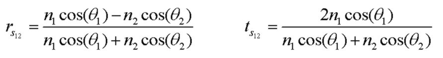 The electric field Fresnel interface reflection and transmission coefficients for S polarized (TE) are: