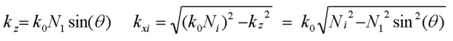 vector field components at all interfaces implies a common temporal and Z exponential dependence shown below with the same kz value in each layer (general Snell's law). Each