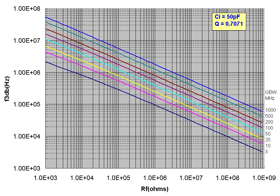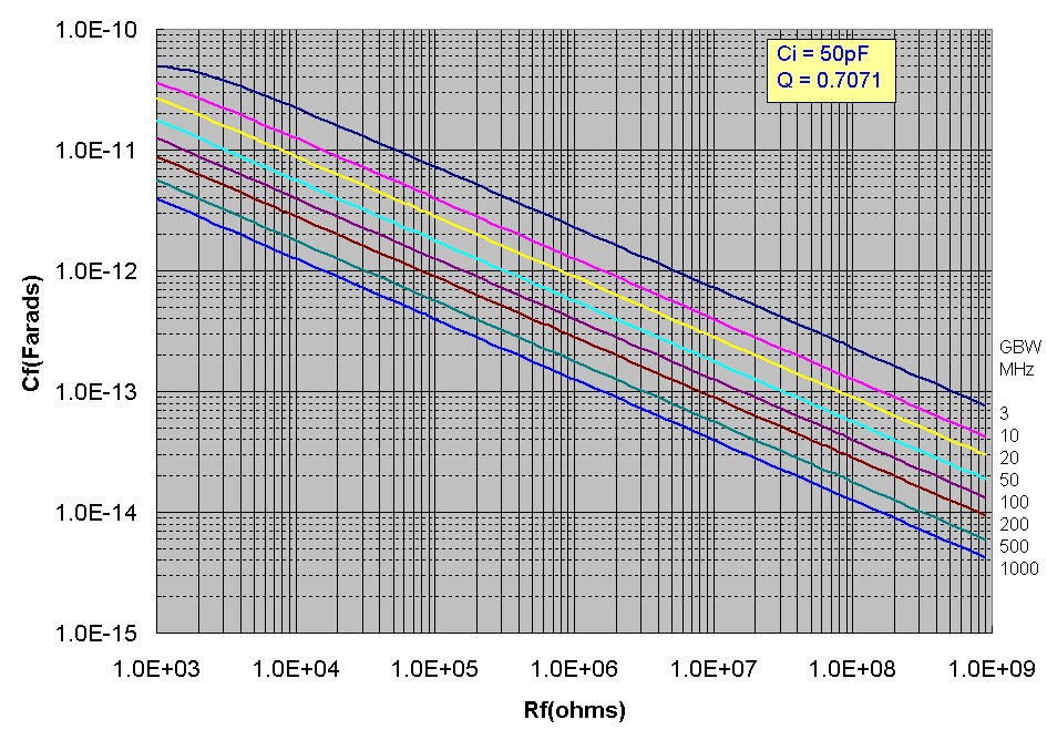Transimpedance f3db and Cf Design Curves for Maximally Flat Frequency Response
