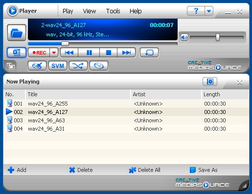 A good quality Creative X-Fi Elite Pro sound card which supports 24bit/192 kHz audio was used to output the digital audio stream: