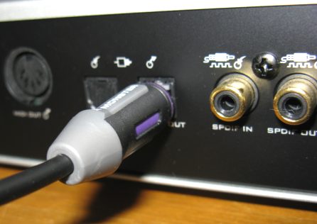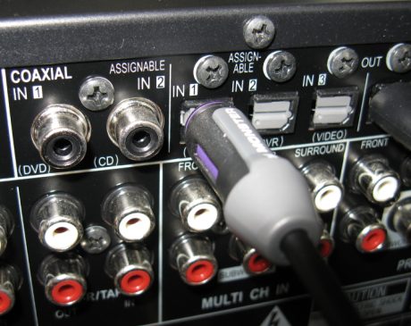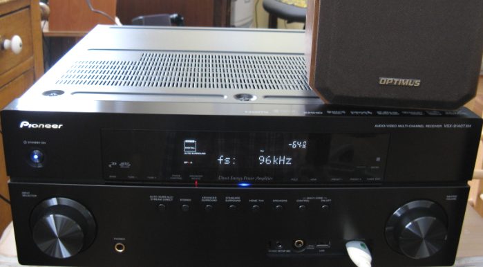 The SPDIF optical output of the sound card was coupled to the SPDIF input of a Pioneer VSX-9140TXH digital receiver and the audio