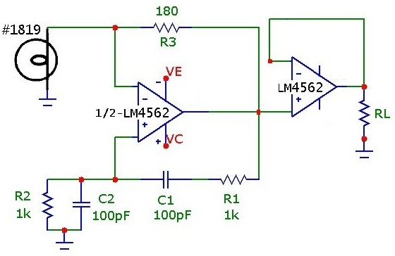 test signal circuit can be implemented. The circuit below was tested under different loads RL, and the output amplitude