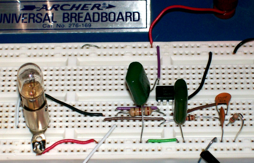 to nudge the oscillation frequency of this classic circuit into the MHz range. The following simple circuit