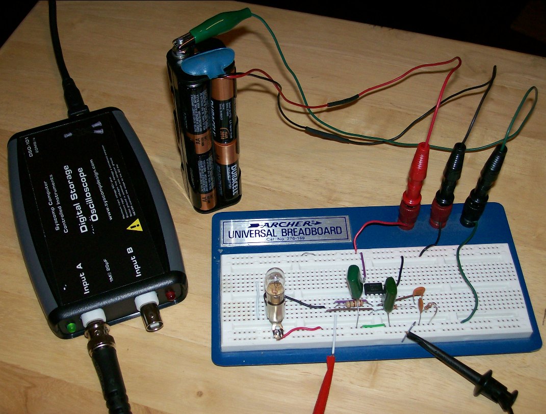 test configuration are shown below (in this case powered by a split 8-AA supply although it does function